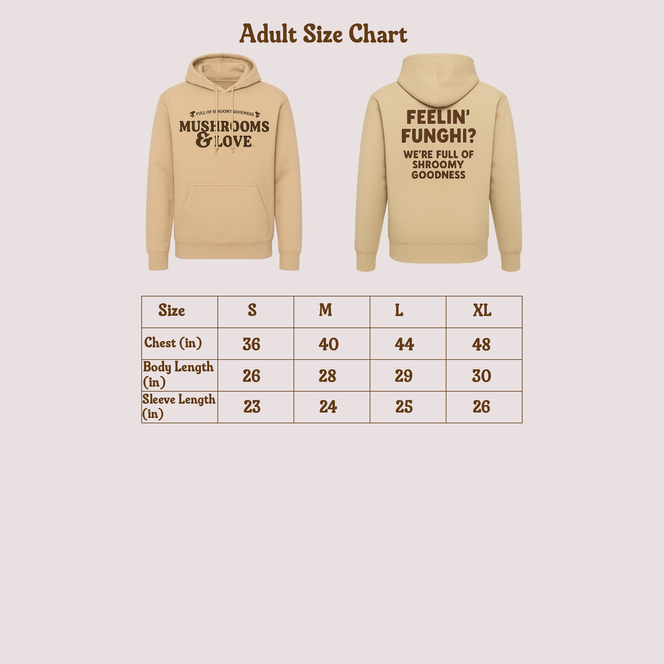 Level up your wardrobe with our Mushrooms & Love hoodies — soft, warm, and guaranteed to spark smiles.